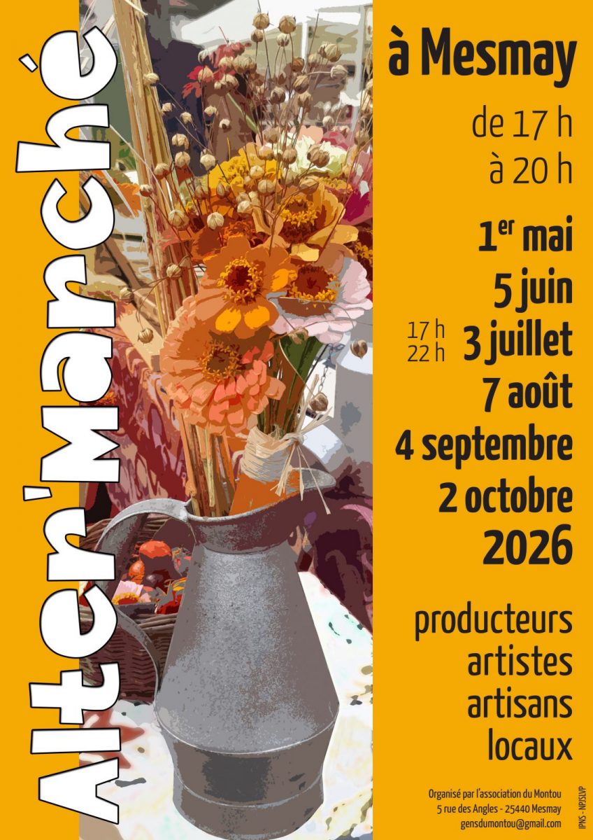 L'alter'marché de l'association du Montou est un marché de producteurs, artisans et artistes locaux avec buvette associative et groupe de musique. Le but de ce marché associatif est de promouvoir le développement de produits alimentaires de qualité et dont les conditions de fabrication sont respectueuses de l’environnement, des santés animale et humaine. Cet engagement, formalisé par une charte permet à l’Alter’marché d’être un lieu d’échange direct entre producteurs et consommateurs.