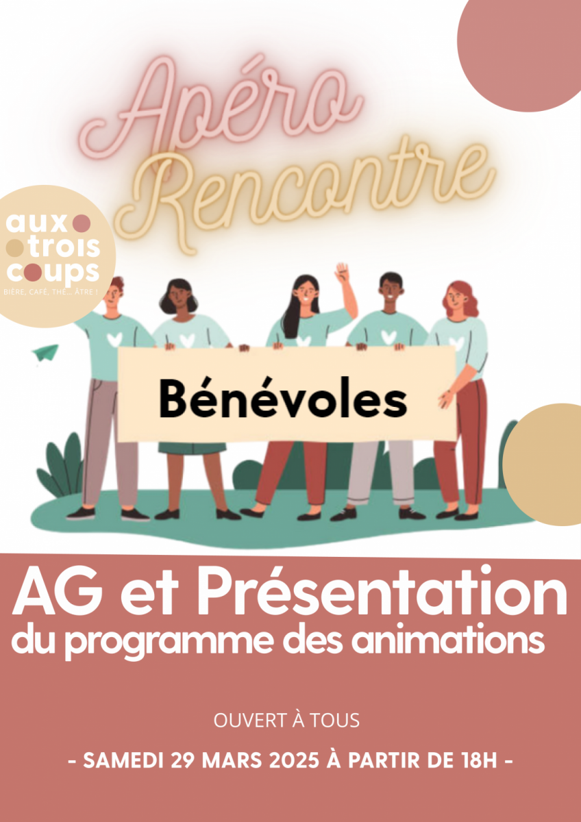 Venez participer à l'assemblée générale suivie d'un “apéro rencontre” avec les bénévoles et d'un quizz culture générale.