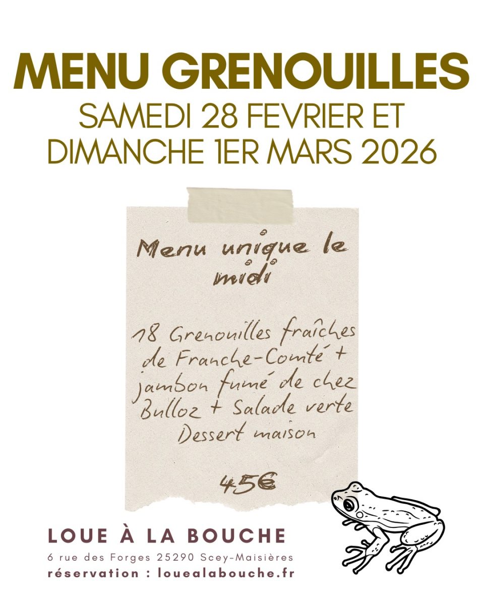 Manger la GRENOUILLE ! ?? On ne vous parle pas de partir avec la caisse, mais juste de vous régaler ! ?? On essayera de ne pas se faire plus gros que le bœuf, mais en toute simplicité, 18 grenouilles de Franche-Comté, fraîchement pêchées, en persillade accompagnées d'un bon jambon fumé de Fontain, de salade et d'un dessert maison ! ?? C'est de saison, local et cuisiné avec amour... comme toujours !
