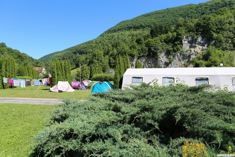 L'aire d'accueil est située dans le camping du Champaloux au coeur du village de Lods, cité de caractère Bourgogne-Franche-Comté, membre de l'association des plus beaux villages de France. Un cadre de verdure, en bordure de rivière dans la Vallée de la Loue.