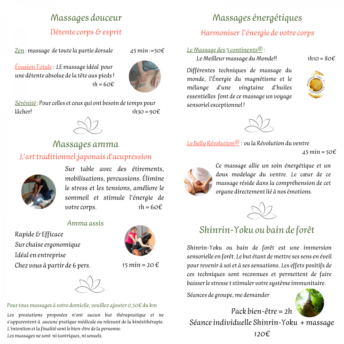 Besoin d'un moment de détente ? Envie de se faire cocoonner ? Prendre soin de vous c'est vous donner de l'importance! Massages énergétiques, d'acupression ou de relaxation de 45 à 90 min.