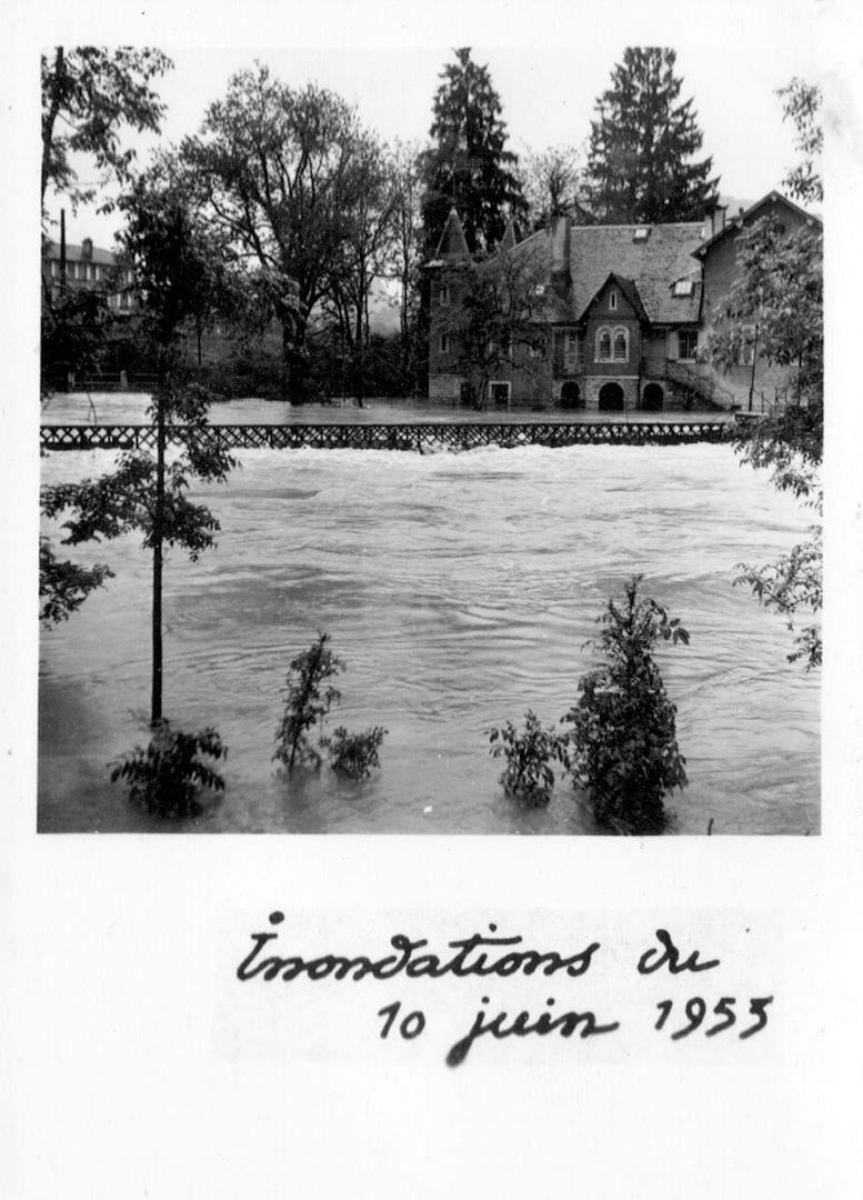 - En mai 1983, les précipitations quasi permanentes du 13 mars à fin mai entraînent une crue de printemps. Sur la règle, on note 2,42 m.