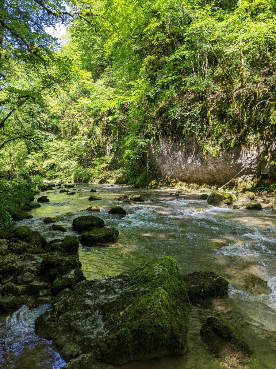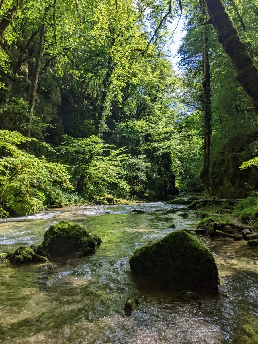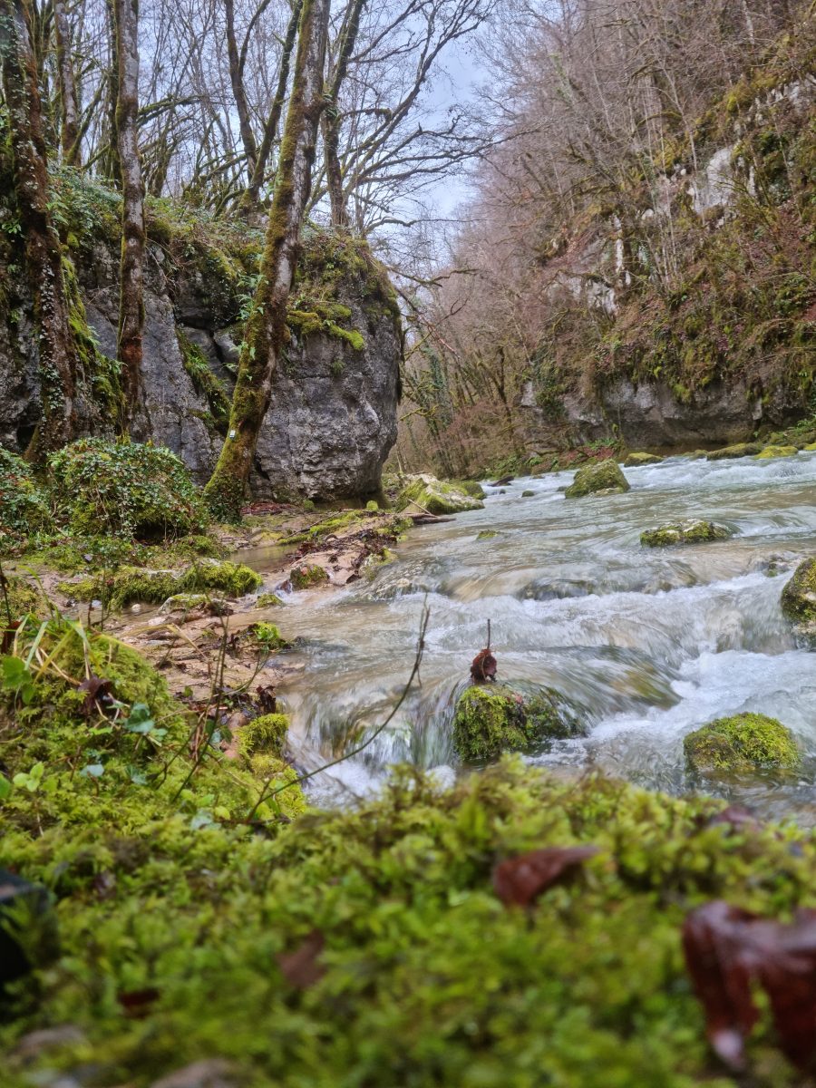 1Dans une lettre à son mécène Alfred Bruyas en février 1866, Courbet qualifie la toile qu’il est en train de peindre représentant le Puits Noir « de superbe paysage de solitude profonde, fait au fond des vallons de mon pays ». Site proche d’Ornans, ce lieu fait partie de la géographie intime de Courbet. Le ruisseau de la Brême y coule au milieu des rochers, dans une gorge étroite et assombrie par la végétation luxuriante. La sensation d’être au cœur de la nature en fait le lieu de prédilection du peintre.