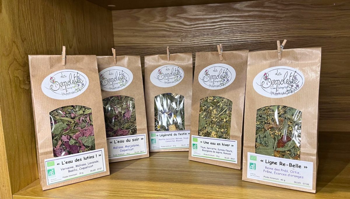 La boutique propose aussi des produits pour accompagner les longues soirées d’hiver comme les tisanes bien-être La Serpolette !